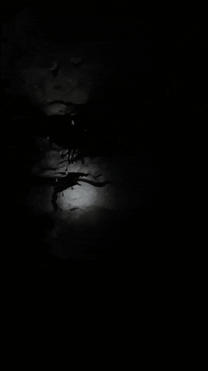 洞如其名,伸手不見五指的洞穴里,用手電照耀頂端,成群的蝙蝠倒掛,成群的黑色陰影,心頭微微一震。
