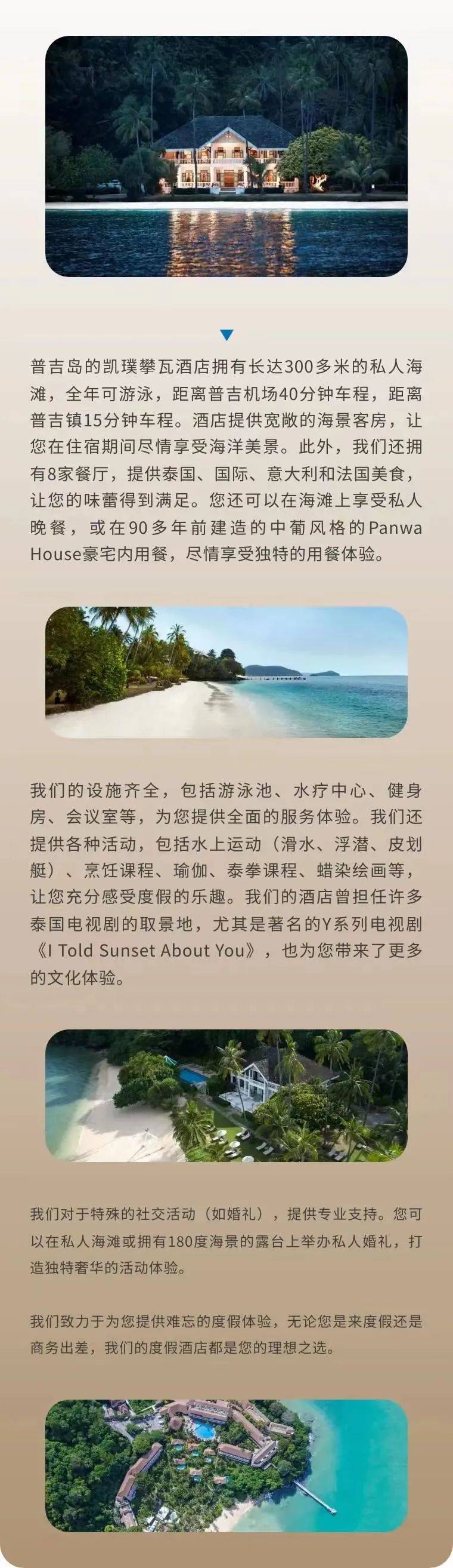 凱璞酒店臻選系列是泰國豪華酒店品牌之一,為對住宿環境要求高品質的客人提供一系列精品酒店。這些酒店坐落于泰國的優越地理位置,包括曼谷、華欣、蘇梅島、瑤諾島、普吉島等地,提供豪華的套房住宿、優質服務和卓越設施,以獨特和個性化的風格呈現。2. 可以直接預定機場接機,態度熱情,四十五分鐘就能抵達酒店。3. 相比起其他普吉島的酒店和沙灘,這里真的算人少安靜。03所以,到底什麼是普吉?走在普吉老鎮的街道上時,我也在想,普吉到底是什麼。就如同這老鎮,某社交平台上美圖如云,將其形容為多巴胺小鎮,但在我看來,這里遠不止多巴胺的美妙。熱帶島嶼通常都有著豁達的民風和質樸的真情,普吉島也不例外。