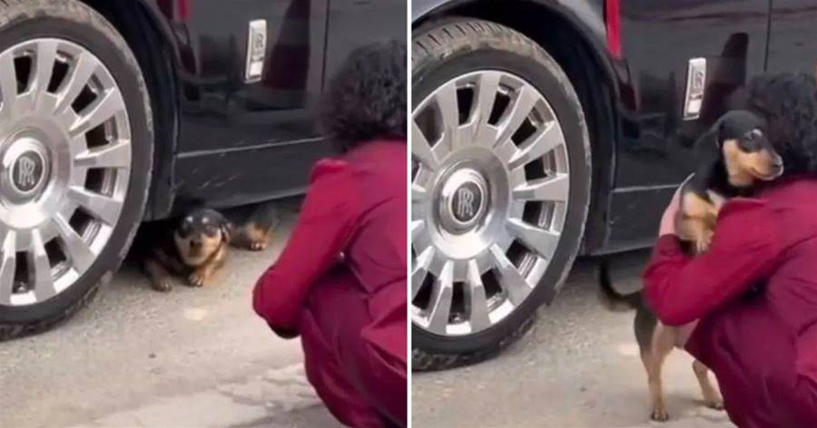 可即便如此,狗狗仍舊不舍得主人離開。看著緊閉的車門,正在它不知所措時,忽然心生一計……鉆到車子底下,這樣車子就無法啟動,主人也就無法離開了。