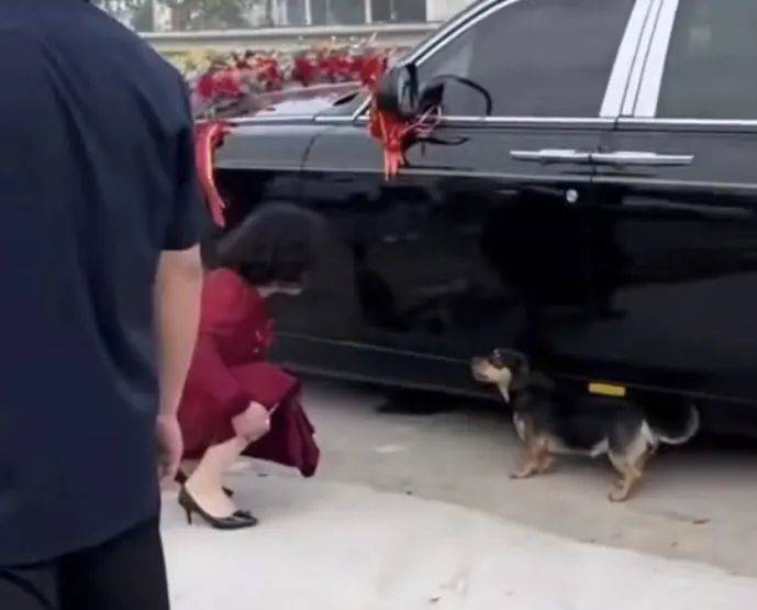 當天舉辦婚禮的時候,狗狗就全程跟在新娘身邊,寸步不離。婚禮結束后,眼看著主人就要跟著老公坐車回家時,狗狗立刻沖上了車。