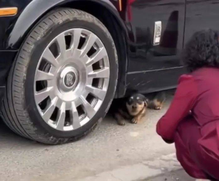 姥姥看狗狗這樣,心疼壞了。再這樣僵下去,也不是辦法,便上前開始不斷地勸說狗狗。十幾分鐘后,狗狗終于不情不愿不舍的從車輪底下,走了出來。