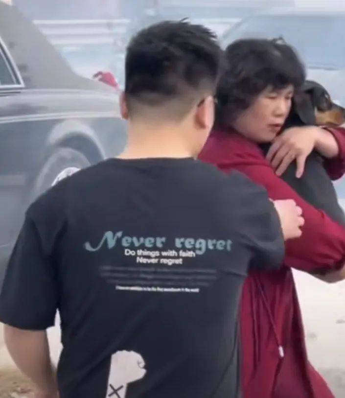 那時候,姥姥眼中滿是淚水,狗狗也是如此。不忍心狗狗再繼續傷心下去,于是姥姥急忙抱著狗狗,離開了這離別現場。