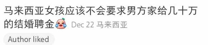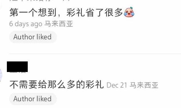對此,有網民在評論區補充了這位博主沒有提到的點,即是大馬與中國的彩禮差異。