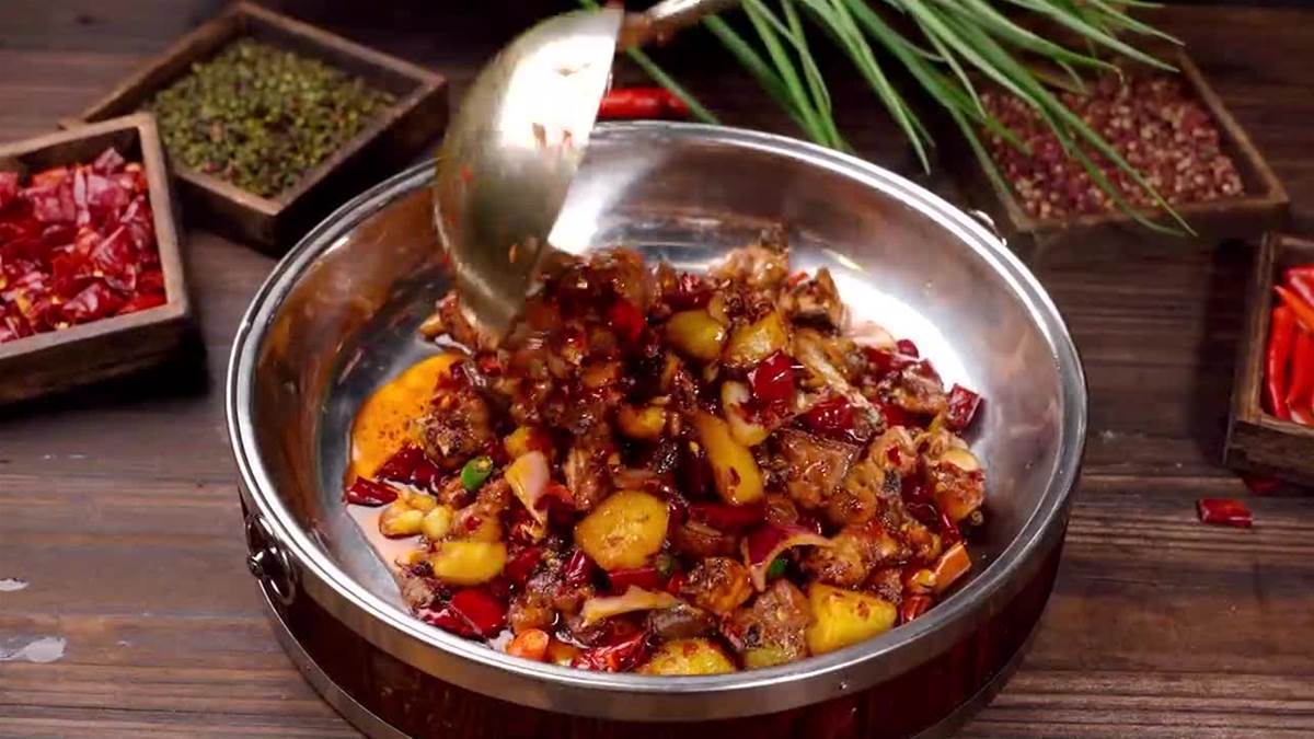 干鍋雞選用新鮮的三黃雞作為主料,輔以土豆、干香菇、洋蔥和青紅小米辣等對口味和營養都有促進作用的配菜。三黃雞肉含有豐富的蛋白質,土豆和香菇則補充了人體所需的微量元素和纖維素,吃起來不僅香辣爽口,還能夠滿足人體對營養的需求。