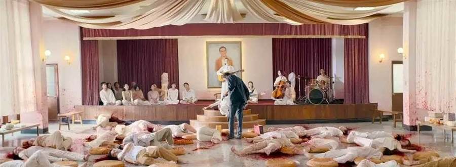 陳桂林在彈夾的切換間,揮舞著手中的槍,將那些被蒙騙者一一送入黃泉。最后,只剩下尊者的女人,她依舊面帶微笑,一邊彈著吉他,一邊唱著歌曲。然而,她并非那些被蒙蔽的人,她是真正的行騙者。是什麼讓她如此淡定自若?或許真相是,這座靈修中心的創立之初,正是這個女人所為。牛頭尊者只是後來才逃到這里,與她狼狽為奸,共同禍害世間生靈。
