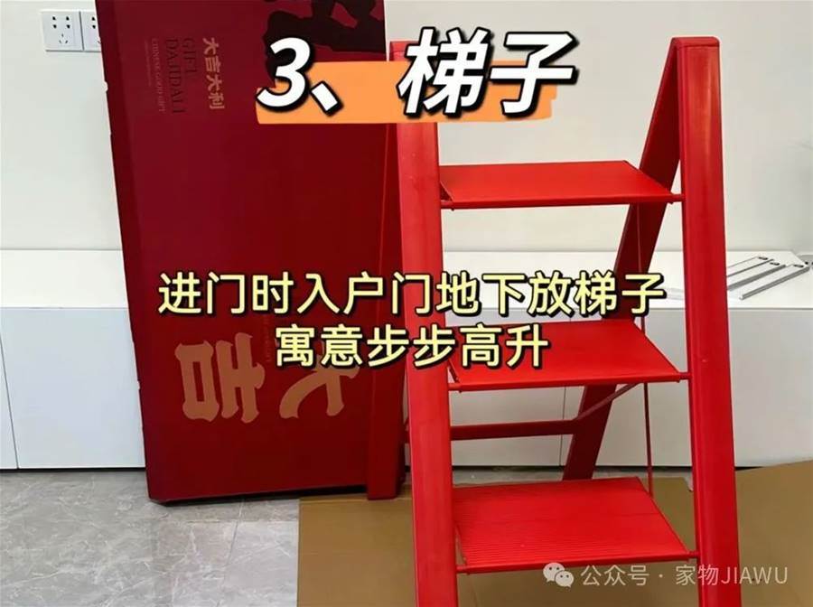 梯子在古時候就有步步高升的意思,喬遷進門時準備梯子也是討個好說法,但更多的,是準備個小梯子,以后在家里登高取物時,可以有個東西踩著也方便不是。