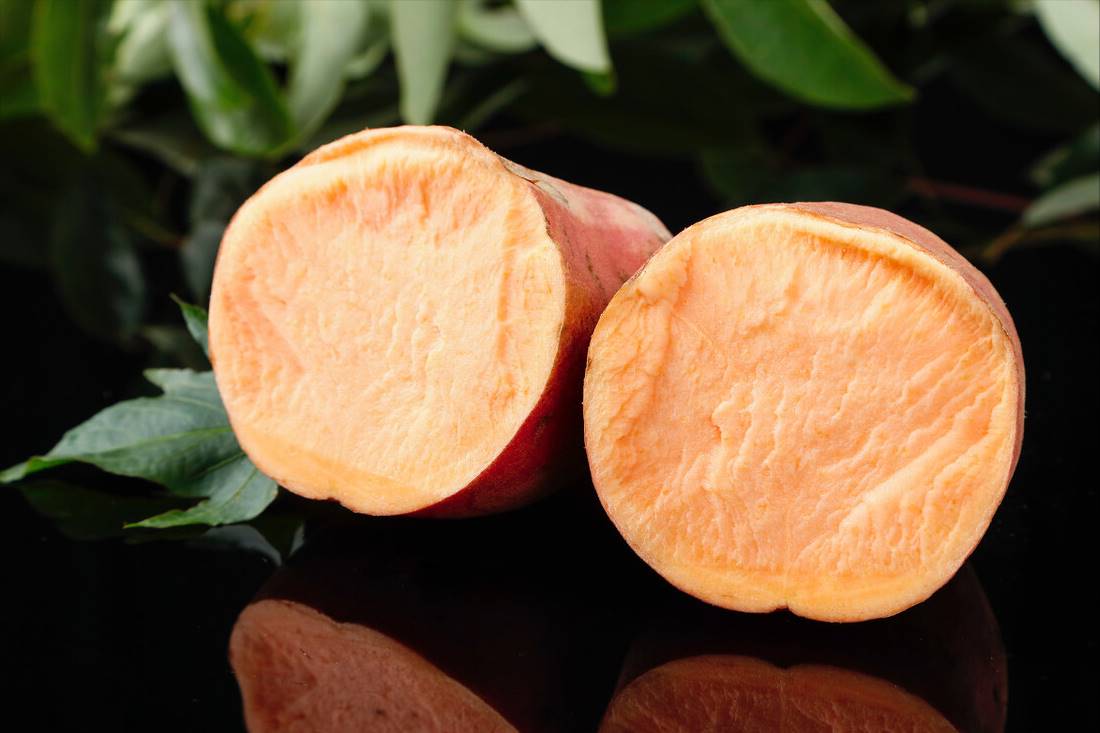 紅心紅薯的薯心呈紅黃色,糖分含量較高,口感更加細膩,吃起來要更甜、也更軟糯。