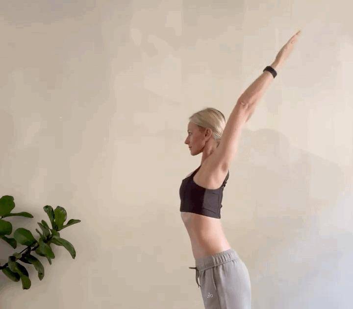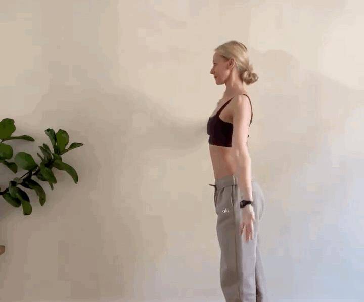 側面對墻站立,右手臂靠墻伸直