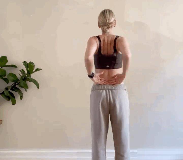 雙手手背放在骶骨上方