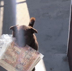 在它剛來新家還是個小毛孩的時候,就經常跟在大狗的屁股后面晃悠,看到大狗去拿報紙,它還會在一旁幫忙。