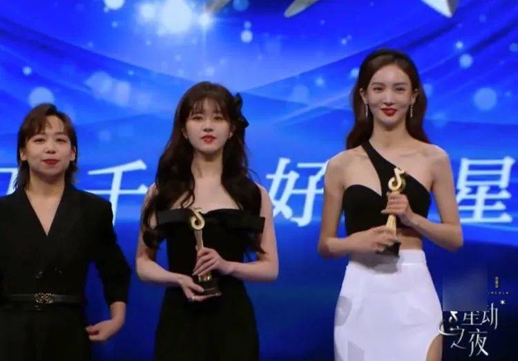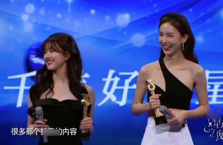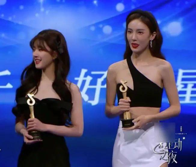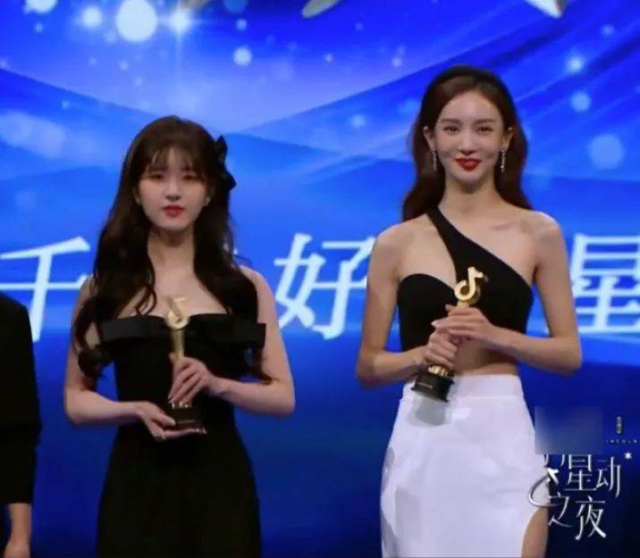 頒獎台上兩位也是站在一起的,御姐和甜妹站在一起,怎麼可能不引起大家的注意呢,這兩位可是太搶眼了。