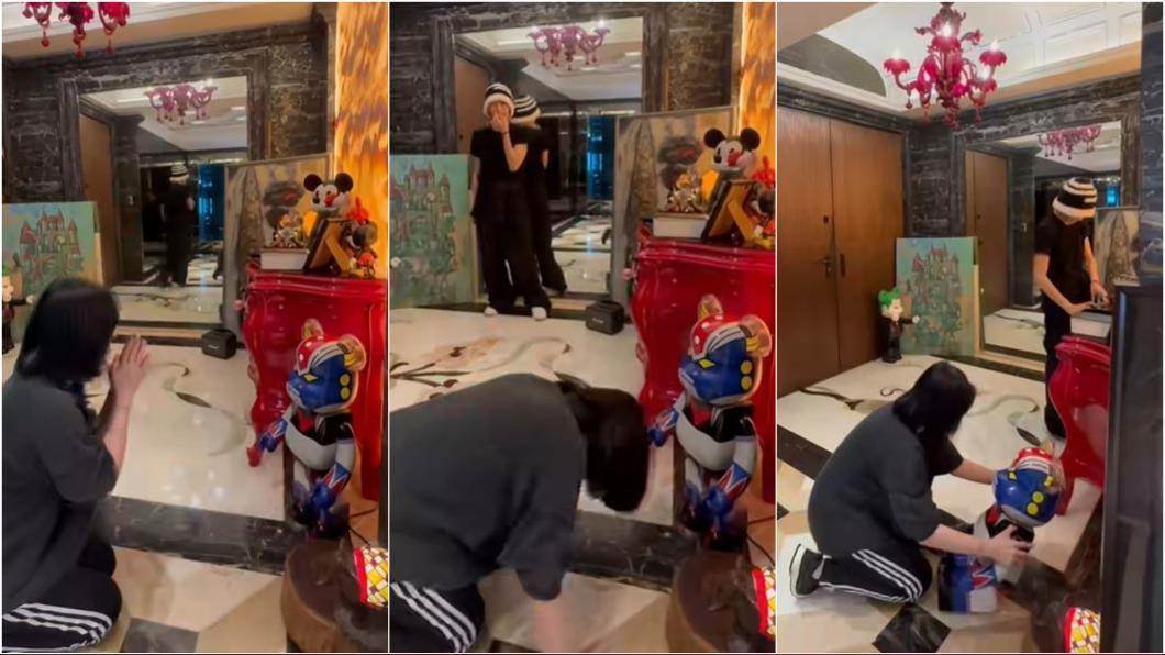 從曝光的影片可見,小S當天請來舞蹈老師在家中練舞,穿著一身休閒的她就站在鏡子前、跟隨老師的動作扭腰擺臀,舞姿充滿力量又嫵媚。只是下一秒,她一個踢腿,卻不甚把老公價值破萬的「庫柏力克熊」踹倒在地,嚇得她當場放聲大叫,嘴裡還不斷嚷著「這是我老公的寶物」、「唉呦,天啊!」、「應該沒事吧?」、「Are you OK?」