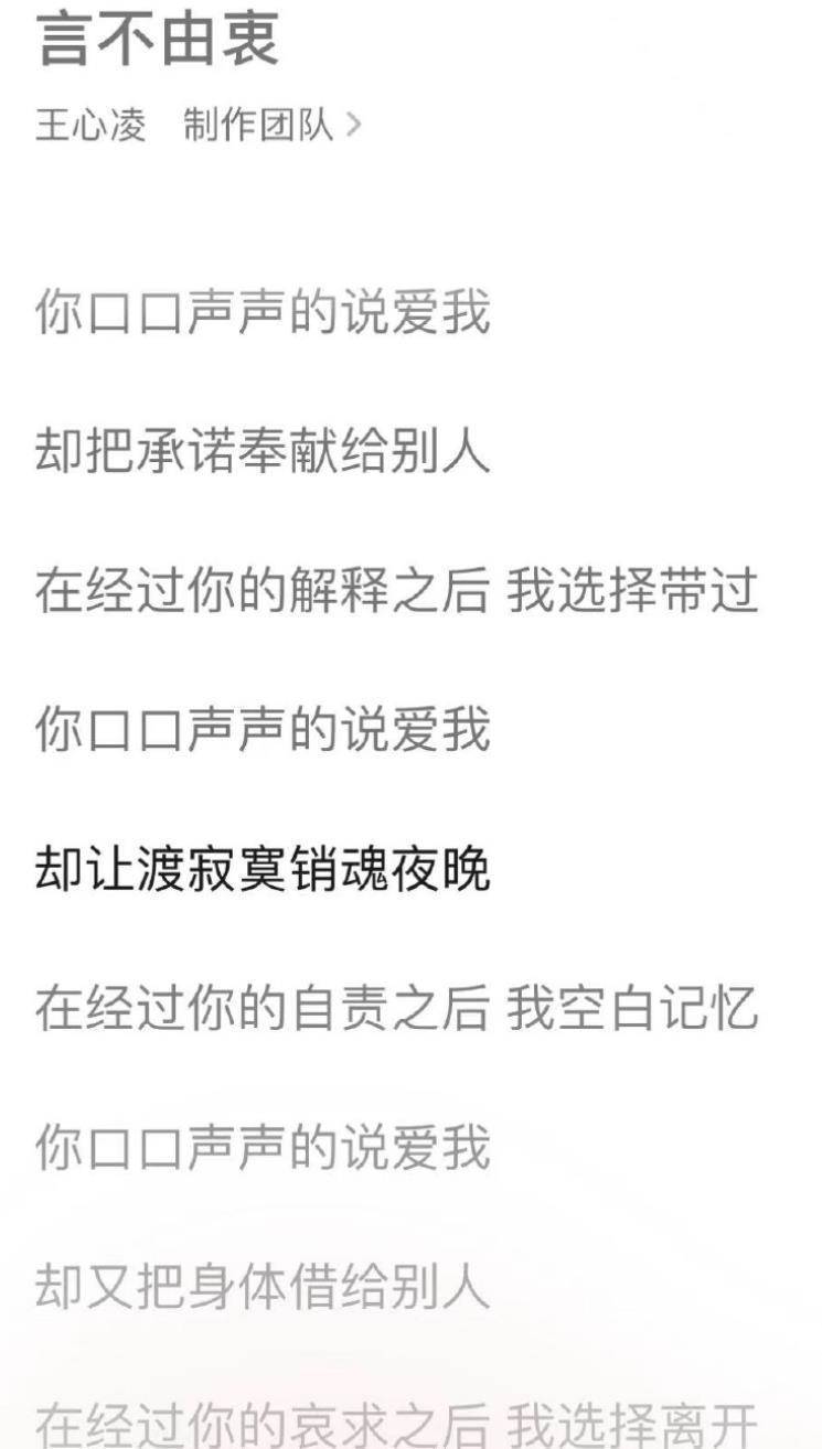 這麼花心的人原諒對他來說當然不起作用,有知情人表示分手原因正是男方花心愛玩,而王心凌在新歌《言不由衷》的歌詞里,似乎也是暗示了男友背叛他們之間的感情。