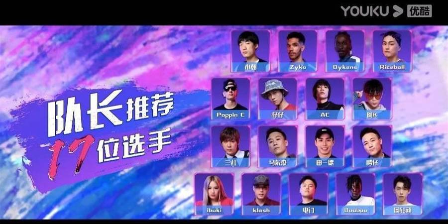 節目組也于YouTube官宣透露隊長推薦的17位選手,包含「小朝、Zyko、Dykens、Riceball、Poppin C、仔仔、AC、阿K、三兒、馬東杰、田一德、騰仔、ibuki、 klash、電門、Bouboo、周鈺翔」,除了以上王牌舞者,爆米花小姐非常期待「傳奇地板舞舞者」Neguin的表現!
