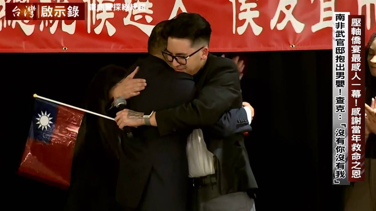 ▲▼當年被救出的南非武官之子小查克,現身挺侯友宜。(圖/東森新聞)