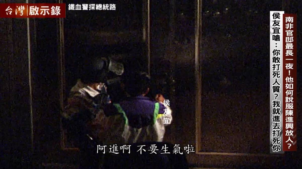 侯友宜還原南非武官挾持事件,當天派出所接獲通報,指稱有一名自稱陳進興的人士挾持南非武官,侯友宜趕抵現場與陳進興通話,雙方原本約定好不開槍,沒想到因知會不完整,引發另一波槍戰。