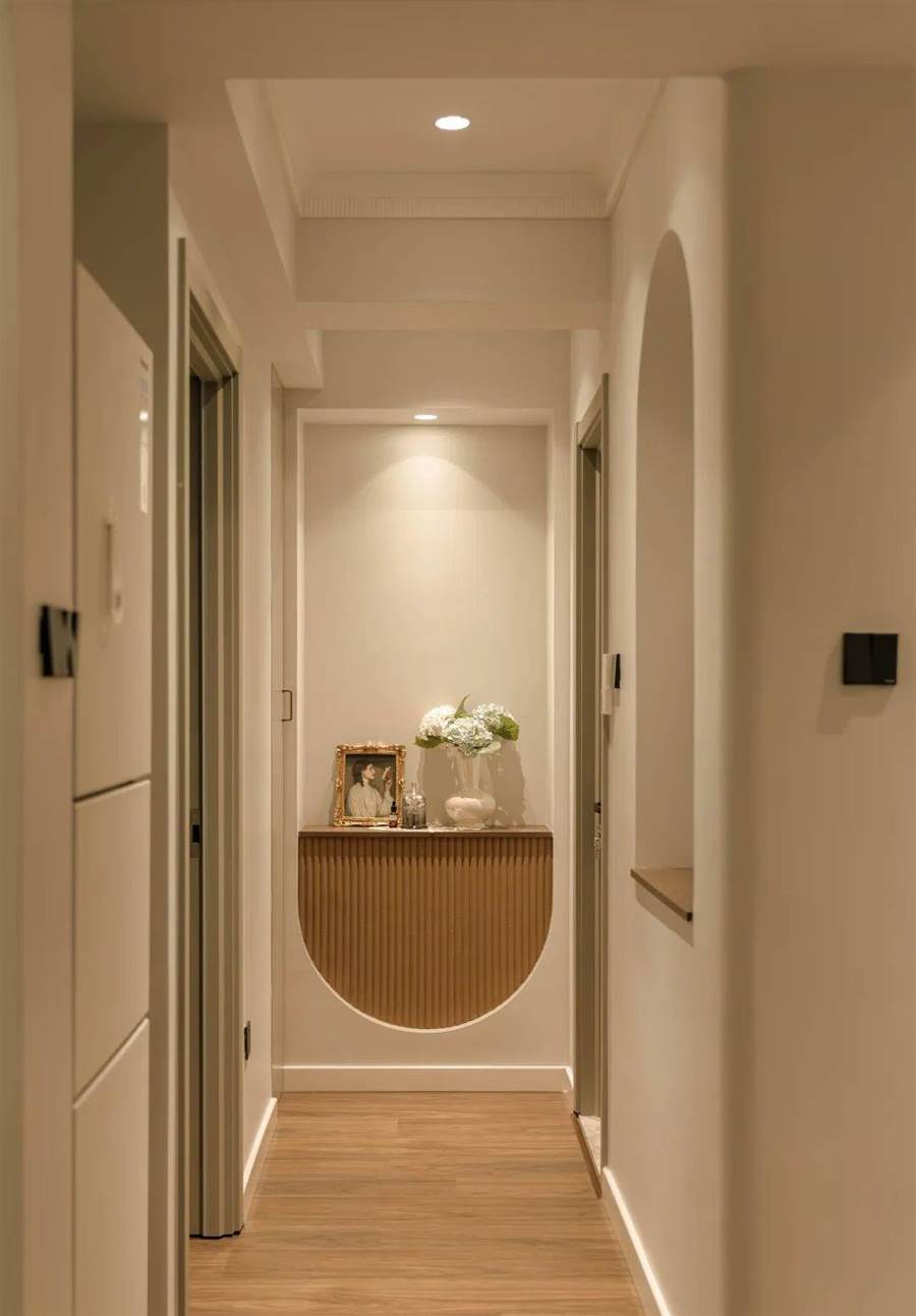 過道盡頭是一面「倒置」的拱門造型,