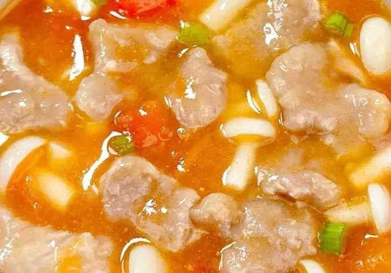 5、水開后放入牛肉,加入食鹽和胡椒粉調味,攪拌均勻煮兩分鐘左右,煮熟煮至入味即可出鍋開吃。