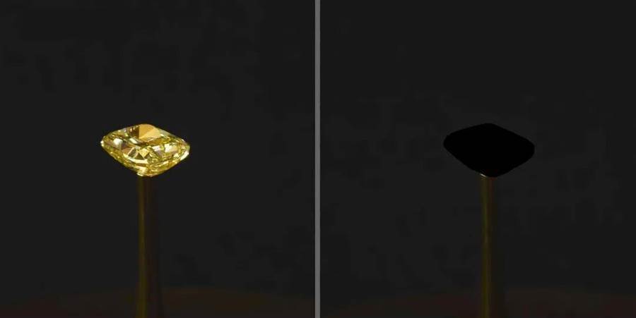 2019年,美國麻省理工學院在「提高材料導電性能」的研究中意外發現:讓垂直碳納米管生長在氯腐蝕過的鋁箔表面,可以讓鋁箔吸收 99.995%的入射光。這次實驗陰差陽錯地得到了有史以來最黑的材料。為了紀念它的誕生,藝術家將一顆價值200萬美元的鉆石表面涂滿了這種材料,并將其命名為「虛榮的救贖」。