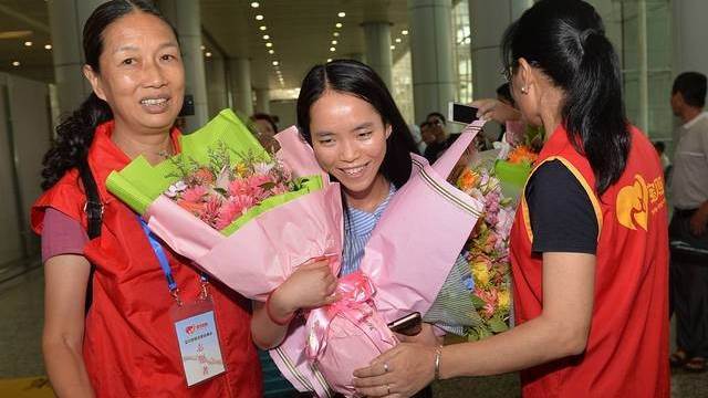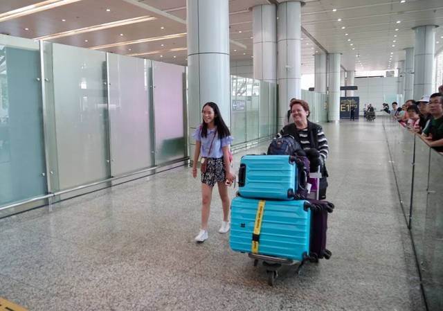 2018年7月1日上午,18歲的美籍華人凱莉(曾名梁晶浪、中鳳敏)和美國養母桑迪到達廣州機場,