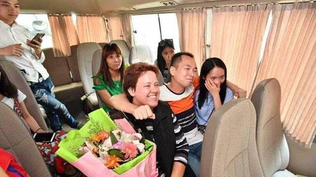 團聚之後,梁晶浪離開父母,和美國媽媽踏上了歸國旅程。
