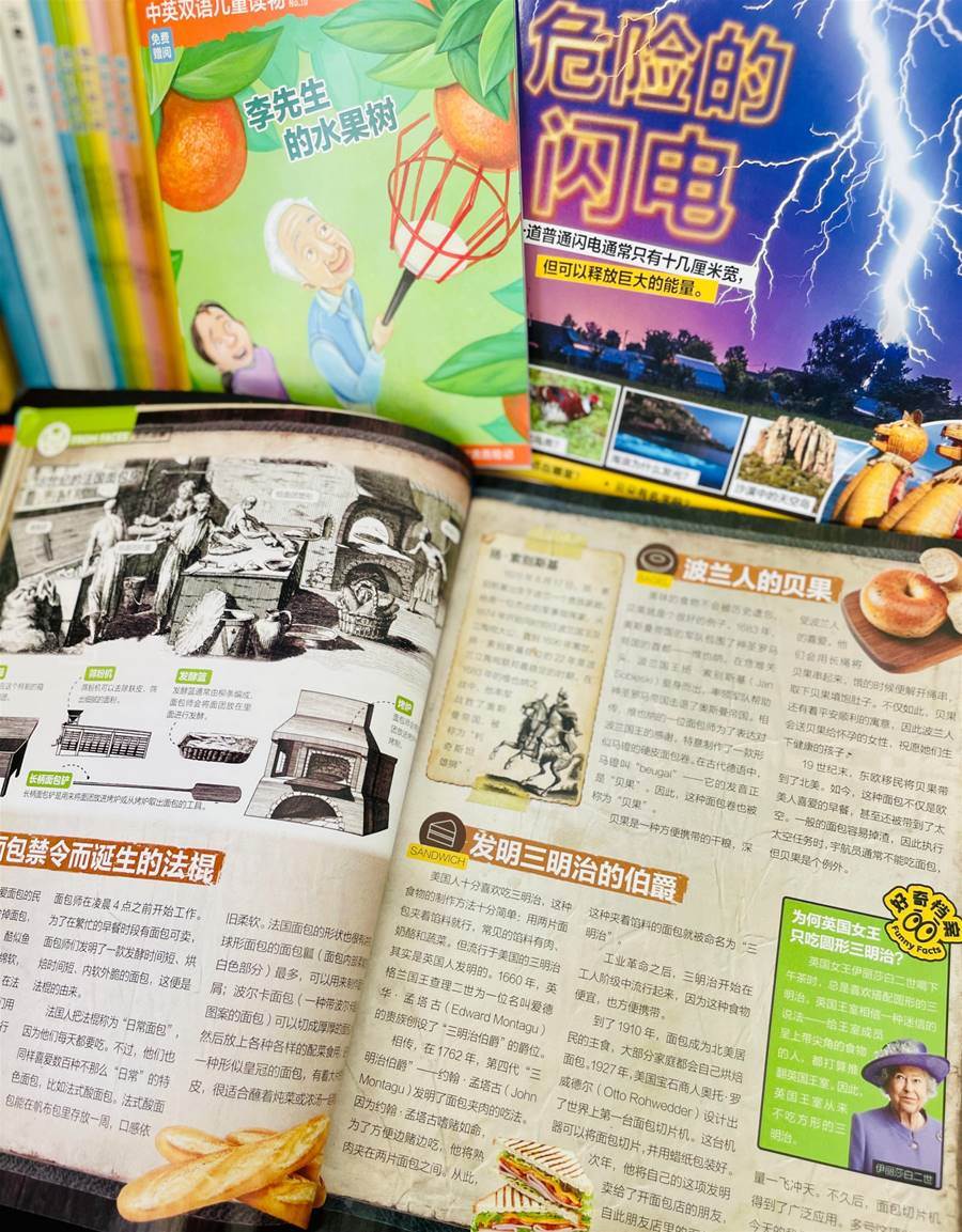 一本是X星球,講科學、技術、自然。一本是Y世界,講歷史、文化、文學。一本是中英雙語兒童讀物,擴大孩子的英文閱讀量,是時下非常流行的事情。