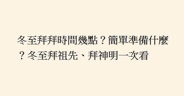 冬至拜拜可以提早,若因事繁忙,無法在冬至當天拜拜,則可以提前最多3天,但是不可以延後拜。