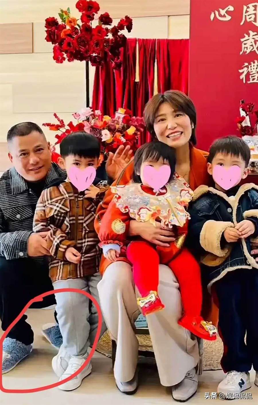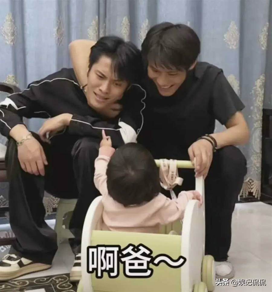 照片中,大楊哥和妻子抱著女兒親密合影,女兒心心眼神呆萌,髮量濃密,胖嘟嘟的圓臉十分可愛,她穿著傳統的周歲「老虎鞋」,小肉腿相當搶鏡。