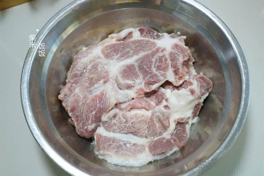 2,切好的豬排可以加一勺面粉抓洗一會去腥,再用清水淘洗干凈,然后攥干水分。