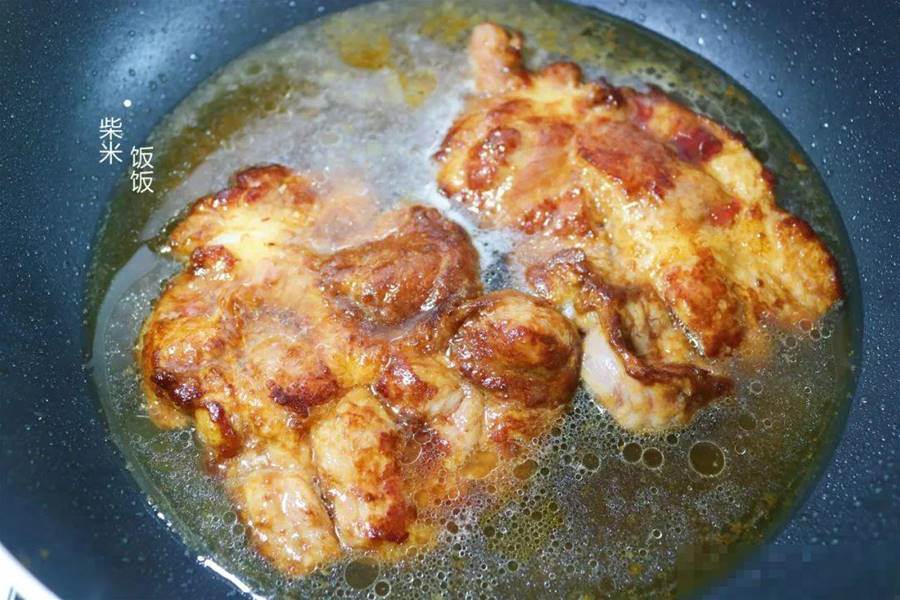 2,根據自己的喜歡,豬排可以切得薄一些,這樣腌好之后可以不放淀粉,直接下鍋煎。然后少加點水,燜煮的時間也可以適當縮短。