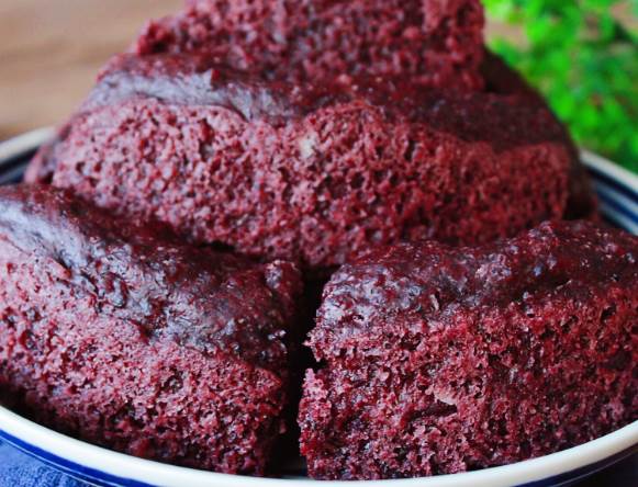 4.將發好的黑米面糊倒入模具里,因我的模具底部是可以打開的,所以沒有直接在模具里進行發酵。(如果直接在模具里發酵會更好)如果在模具里直接發酵就可以直接上籠蒸,反之要等二十分鐘再上籠蒸,30分鐘就可以,蒸好后不要立即打開鍋蓋,等10分鐘再取出,防止有塌陷回縮的情況。