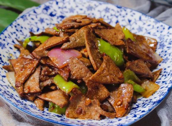 1.買回來的豬肝首先要沖洗干凈,然后用清水浸泡一個小時以上,其作用是去除豬肝內的殘血和雜質。清水里要加入白醋或者鹽,有殺菌的作用。.洋蔥和尖椒分別切成小塊,備用。