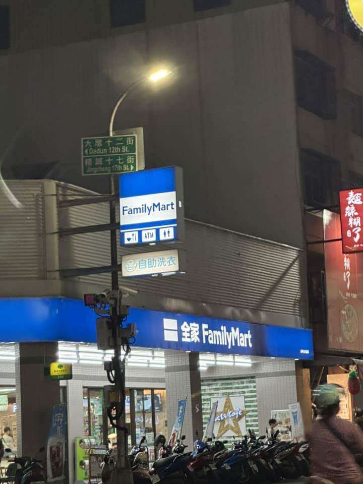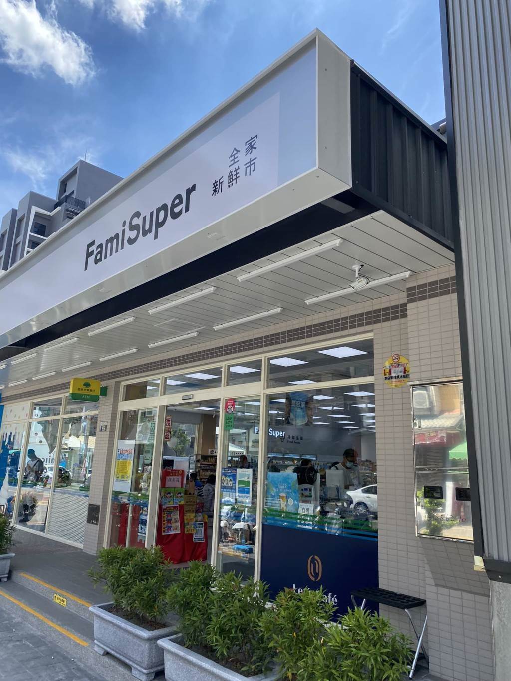 他居然在路上看到一間招牌是白底黑字的全家,店名也有所不同,寫的是「FamiSuper 全家新鮮市」。此外,貼文也釣出有人看過招牌是藍底白字的全家,兩者都和一般藍綠配色的全家有很大不同。