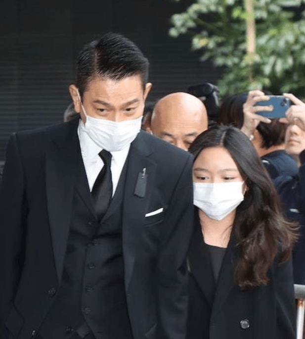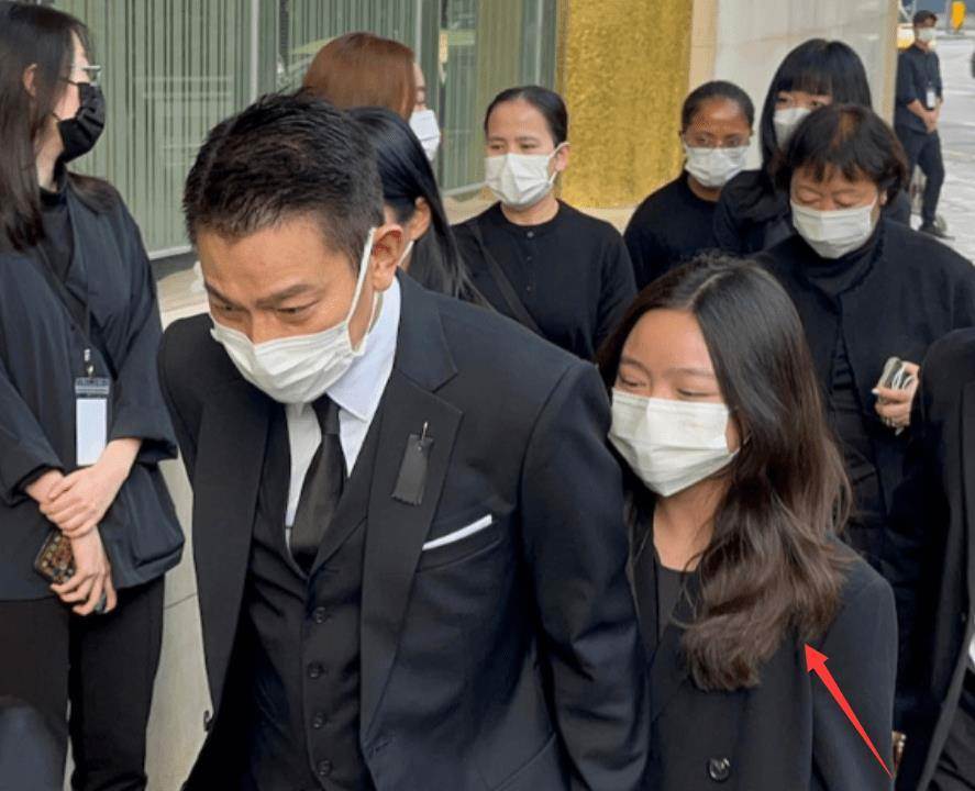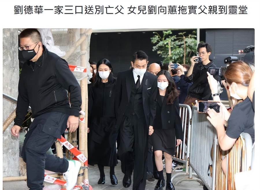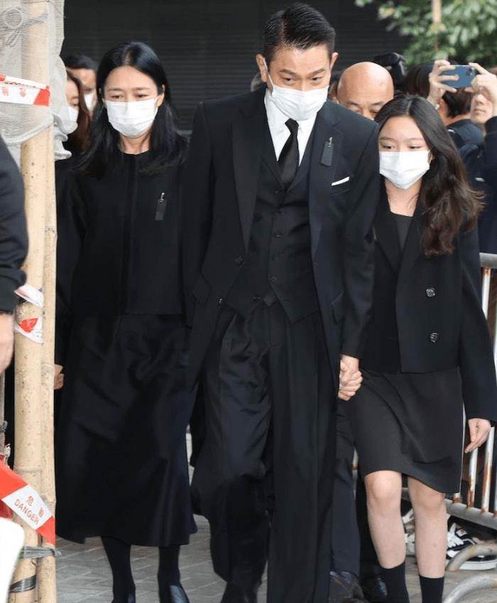 劉德華在中午12點已經抵達殯儀館打點,其太太和女兒并沒有一同跟隨,到了下午2點17分,劉德華的太太朱麗倩與女兒劉向蕙坐車抵達,劉德華親自下樓迎接太太和女兒。