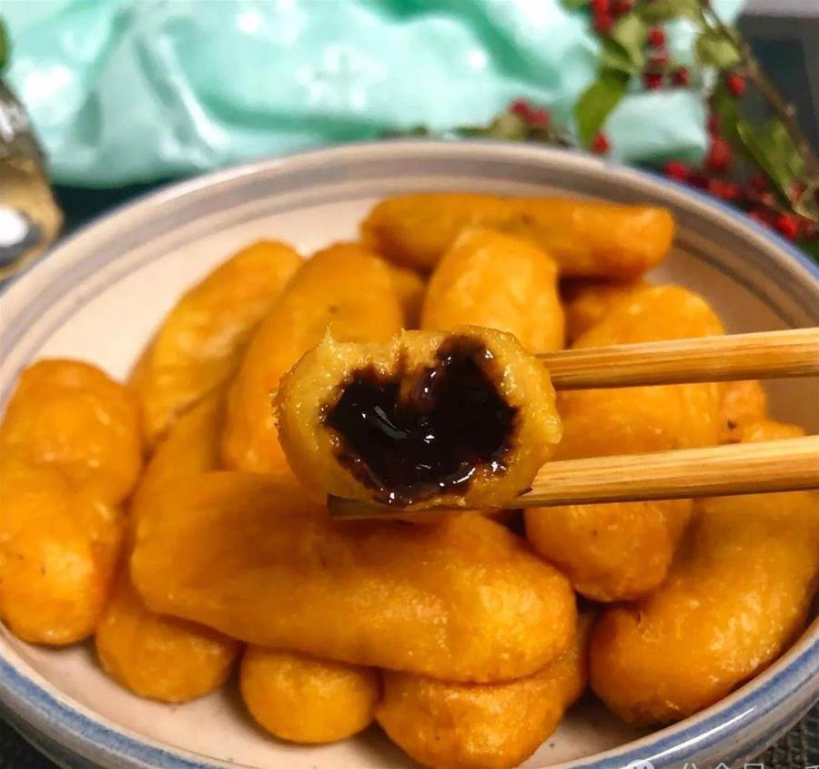 瞧瞧,這顏色金黃金黃的,剛出鍋又酥又糯,用了大量的紅糖,里面漿多到要溢出來了,一次多做點凍起來,下次吃直接炸,美味不用等