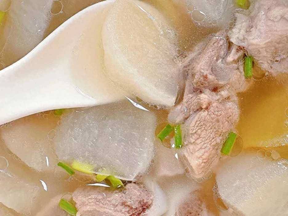 2、將排骨、白蘿卜和姜片都放入湯鍋中,加入適量的清水,蓋上蓋子燉煮一個小時。燉煮時間到,加入食鹽調味,撒上蔥花即可出鍋開吃。