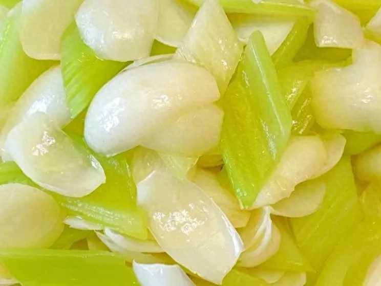 1、芹菜削掉表層的纖維,清洗干凈后斜切成片。百合掰開,翻入清水中浸泡一會兒,浸泡一會兒后清洗干凈瀝干水分。
