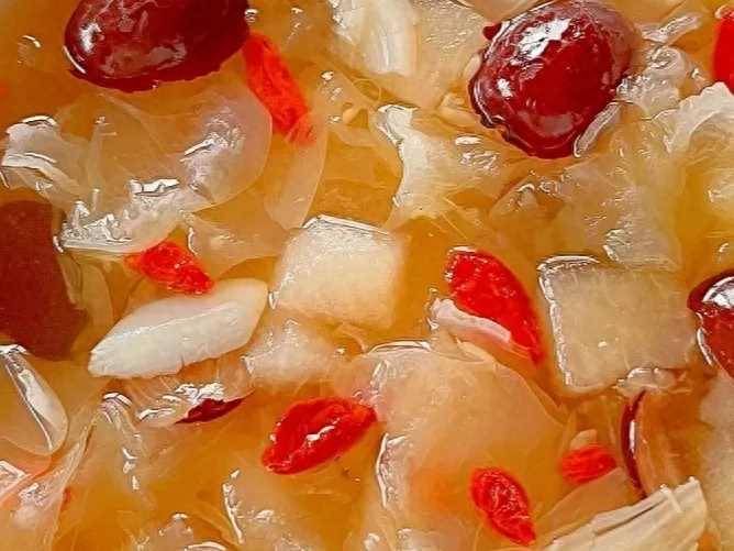 準備食材:銀耳,雪梨,紅棗,百合,冰糖,枸杞子。