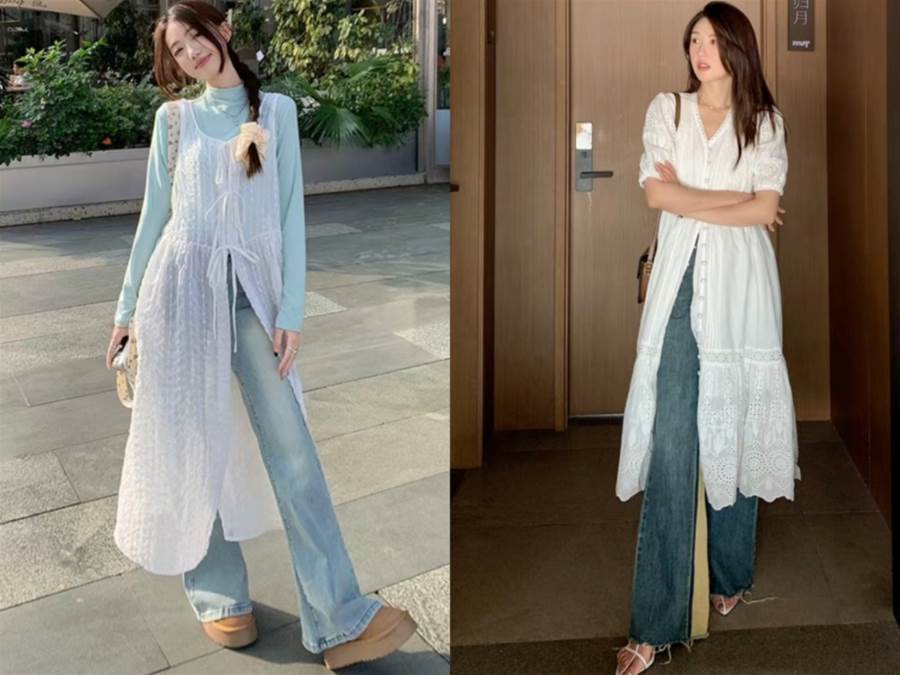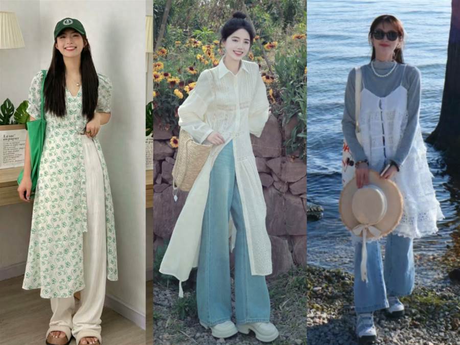 3、刺繡連衣裙/鏤空長裙搭配牛仔褲