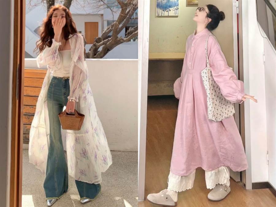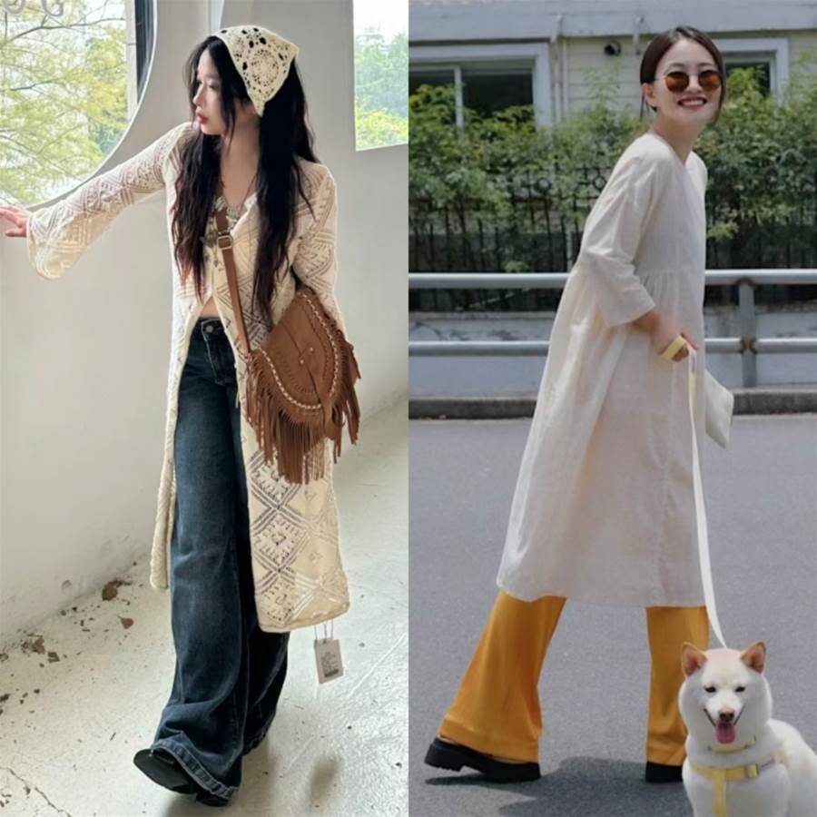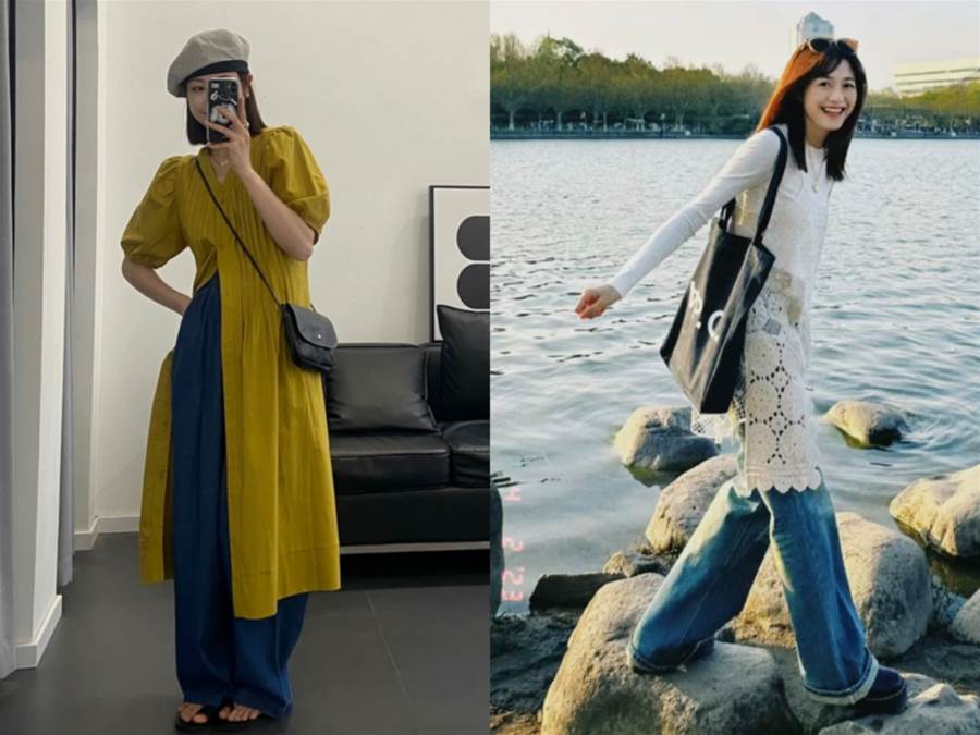 有時她們用兩件簡單的單品重新組合在一起,比如長裙和長褲,就能展現出多樣化的穿搭魅力,給我們的春季搭配提供了不少靈感和參考。